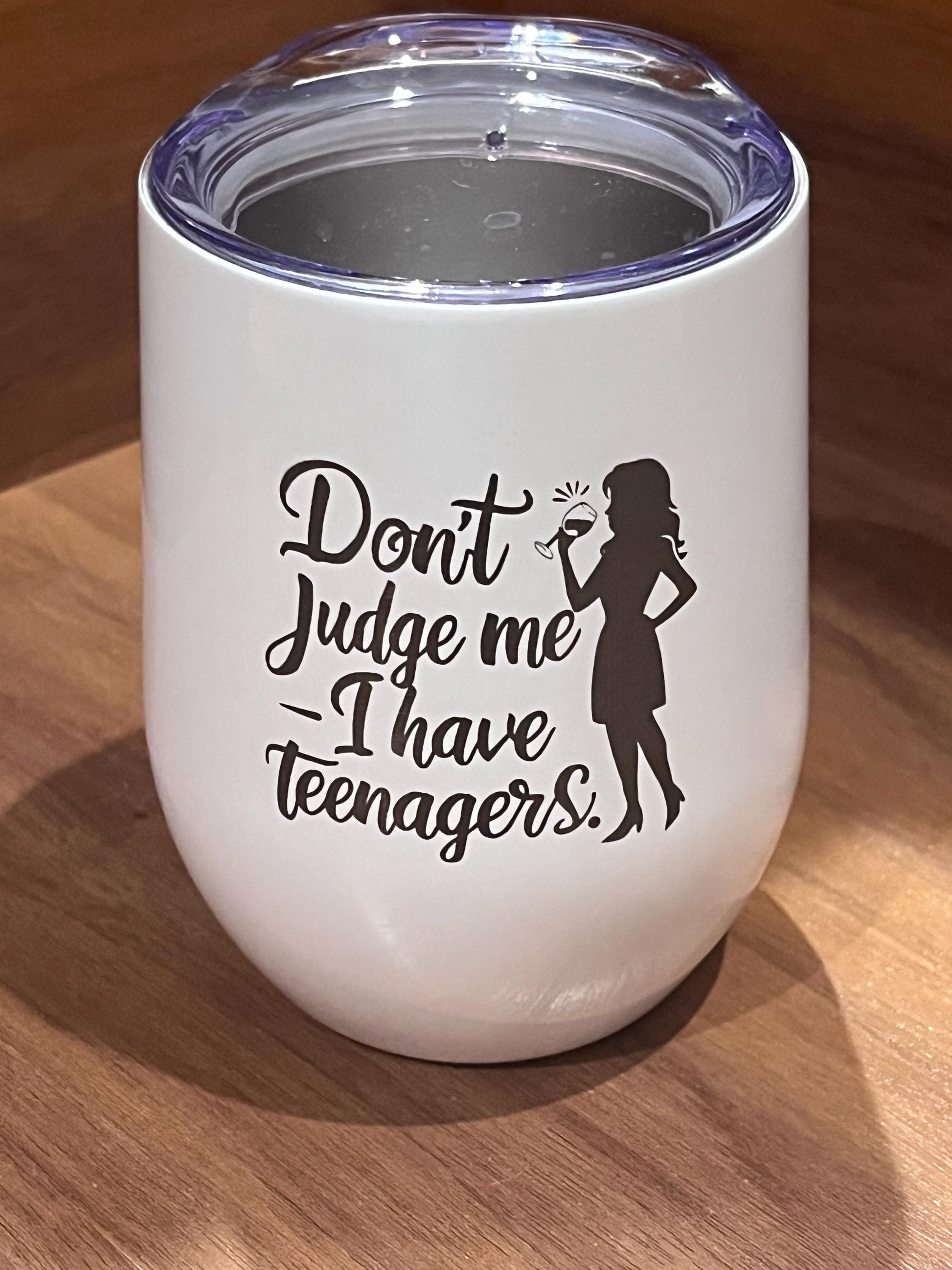 This double‑walled, insulated stainless steel tumbler is engraved with the witty phrase “Don’t Judge Me – I Have Teenagers” — the perfect blend of humor and practicality for parents who deserve a break.